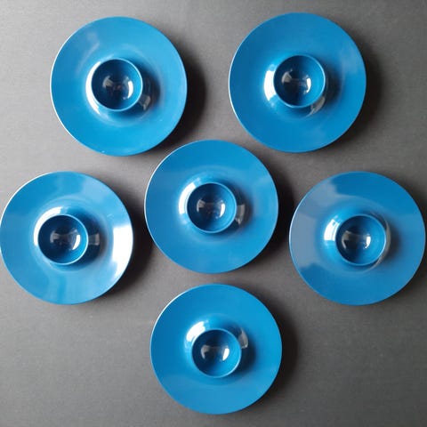 En rigtig retro - klassiker. Klassisk æggebæger i melamin med ekstra stor rand til fx salt, peber og æggeskaller. Kan stables.