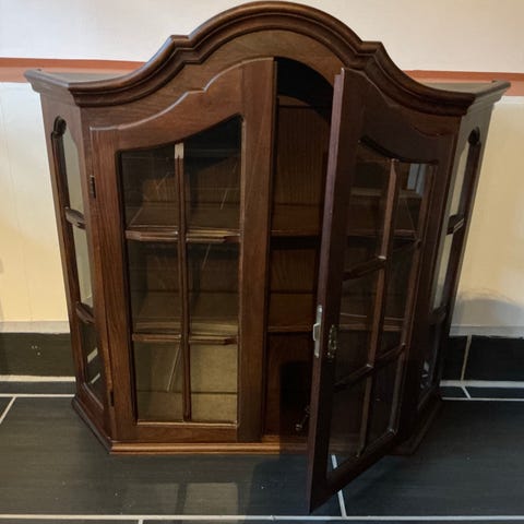 Over 100år gammel vitrine/hjørneskab. Mahogni. Meget fint.