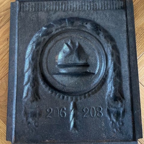 Sort jern plade sælges. der er brugsridser, men kan sikkert males over. brugt under brændeovn