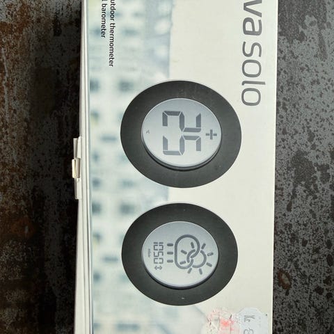 Barometer, Eva Solo, Med det digitale barometer, som måler høj- og lavtryk, kan vejrudviklingen let følges gennem vinduesruden ved hjælp af barometerets illustrative vejrikoner for sol, skyer og regn.