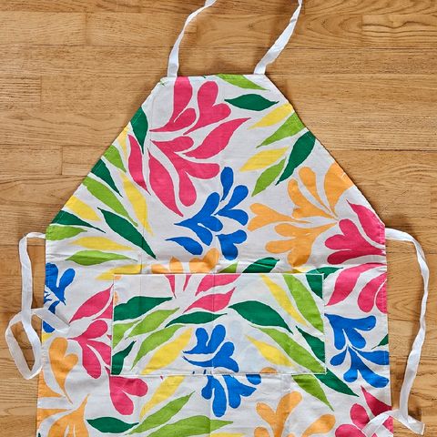 Sødahl forklæde med romantisk blomstermønster.