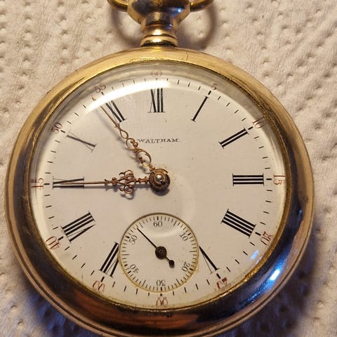 Lommeur, Waltham, USA.lommeur waltham, guld farver, Ø diameter 50mm. 15 jewels, virker,