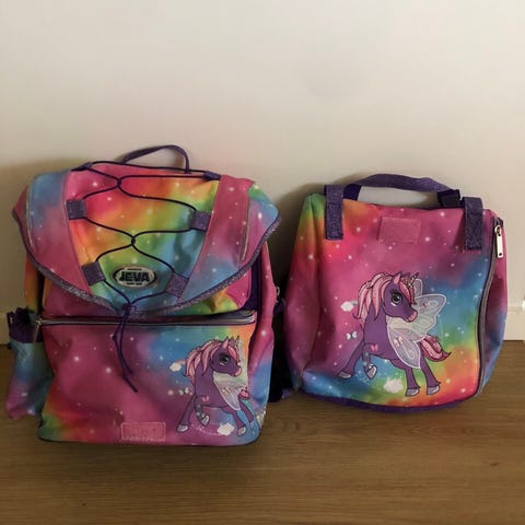 perfekt til begyndere i 0. til 2. I god stand, kun lidt brugstegn. Lækker taske! Ergonomi i top! Praktisk kølerum til madpakke. Gymnastikpose medfølger.
