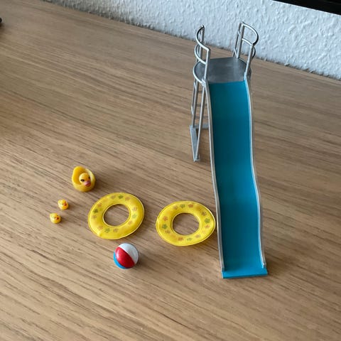 Farveglade møbler til dukkehusets tagterrasse/ haven her samles familien de lange herlige grillaftener. hvis der kommer gæster, er det nemt at sætte to sæt sammen for at dække langbordet! et hulmønstret, firkantet bord og fire forskelligfarvede stole medfølger.