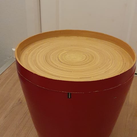 Dette smukke trebenet bord har også indlagt musikstykke, når man åbner låget. Under bordet findes en drejenøgle til spilleoptræk.