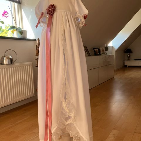 Kjole ca. 90 cm., lang koster 1.700,- kyse 200,- futter 100,- hårbånd 175,-. Kjole ca. 125-130 cm. 1.950,-