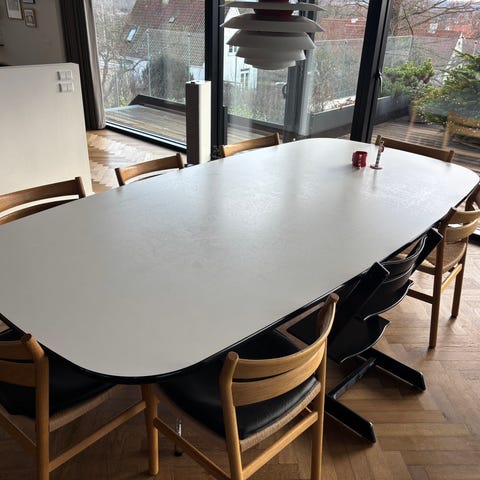 Fantastisk dejligt og stort Eames spisebord sælges. Bordpladen bør slibes og behandles eller skiftet finer, hvis man ønsker andet udtryk.