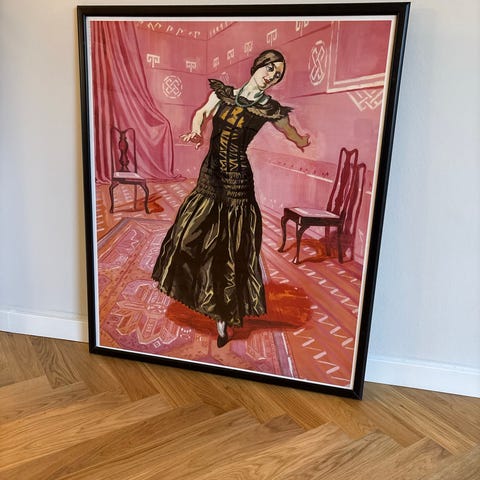 Hele billedet inkl. ramme måler 70cm i breden og 50cm i højden. Står i rigtig pæn stand uden skader på hverken billede eller ramme, og med minimal overfladisk slid. Selve motivet måler 50x36cm.