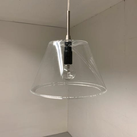 Lamperne er i klar akryl med krom ophæng og klar ledning. Lamperne kan også bruges uden inderskærme - er så bare i klar acryl. Eller du kan købe andre underskærme.