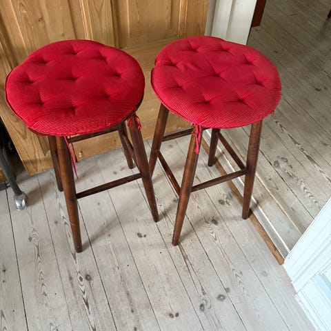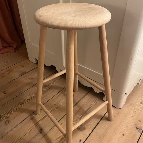 Barstol / høj taburet med ryg fra 60érne i metal med sæde og ryg i træ med en fin patina.