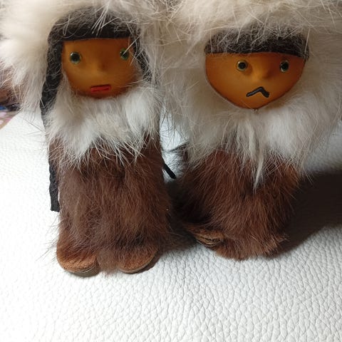 Grønlandsk trædukke ca. 47 cm høj. Er blevet vurderet hos Bruun Rasmussen til mellem 1500 - 2000 kr Jeg sælger den for 525kr
