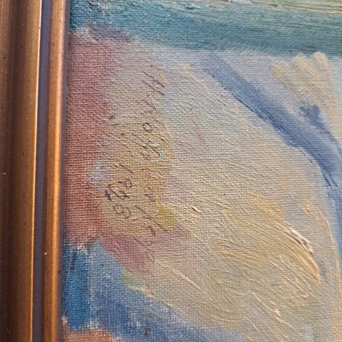 Maleriet er ikke signeret, men på bagsiden er et notat om Hans Koefoed-Jespersen som skulle have malet det.