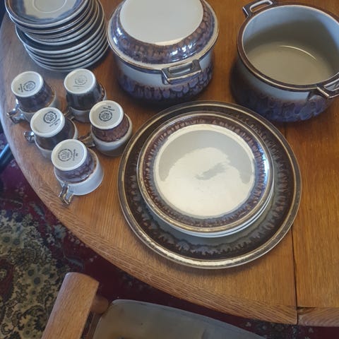 1 Kaffekande, 7 kaffekander med 7 tallerkner, 8 kagetallerkener, 1 flødekande
