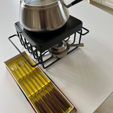 Sælger dette elegante og komplette fondue-sæt fra Kløverblad – perfekt til en hyggelig aften med familie eller venner.