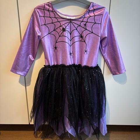 Sød Halloween kjole med tryk og lynlås bagpå. Aldrig brugt.