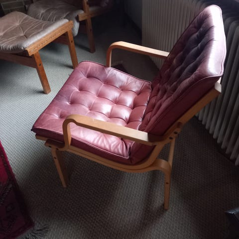 Magnificent Danish armchair created by Finn Ostergaard (1946-) for Skipper, in the 1970s.