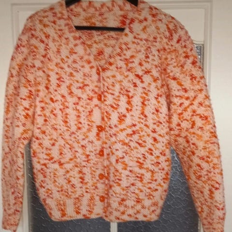 Cardigan i strik. Kommer fra røgfrit hjem og er udelukkende vasket i parfumefri vaskemiddel.