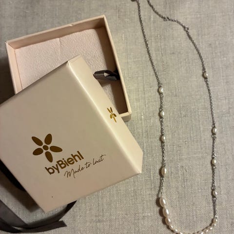 NY Forgyldt halskæde fra ByBiehl med farvede ferskvands perler.