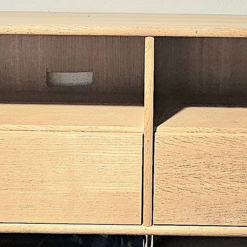 Der er blevet lavet 2 små huller i bagvæggen (se billede nr 17.) som blev lavet i sin tid, til at sætte kabler ind og ud til TV og DVD afspiller.