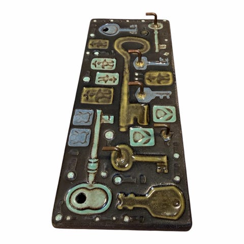 Søgeord: kunsthåndværk, vægdekoration, stentøj, kunst, dansk design, joska, petroleum, gul, brutalisme, kubisme, kunstværk
