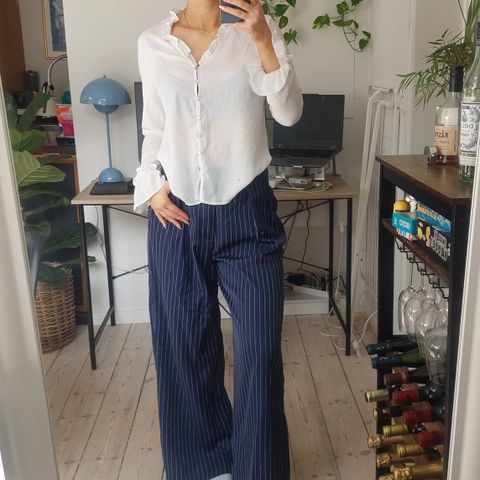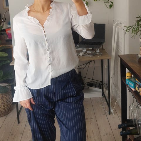 Hvid bluse i transparant stof med sølvfarvede knapper foran