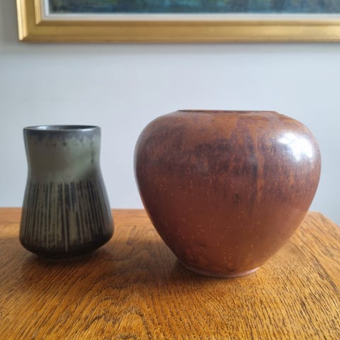 1 stk Saxbo vase i brunlige farver.