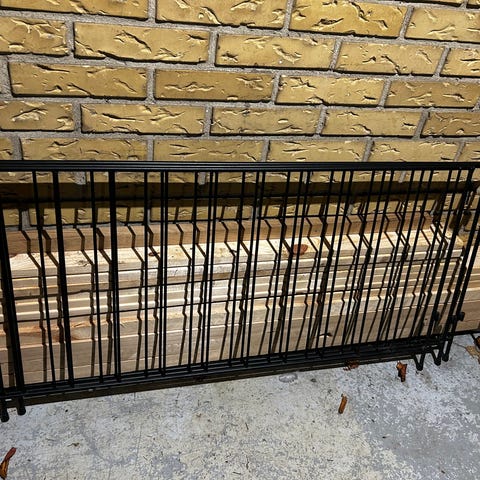 Sjov buet metalskærm med blank, sort bemaling. Ingen afskalning eller rust.