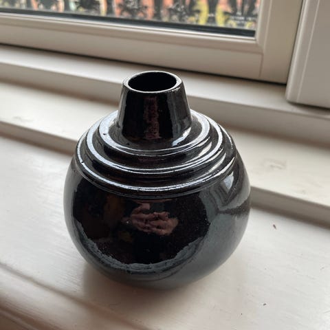 1 stk Christian Poulsen vase i grønlige og brunlige nuancer.