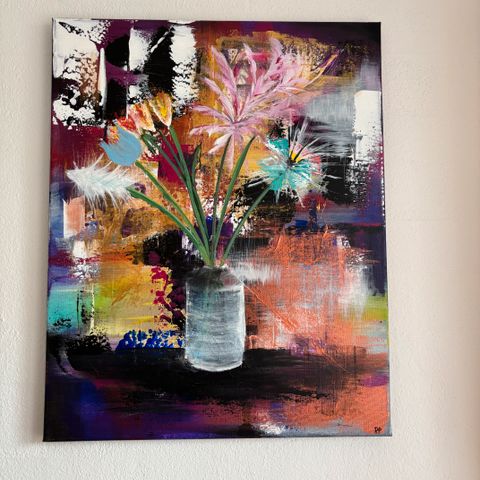 Anne Petersen flotte blomster malerier ca 45 cm gange 65 cm pris stk 650,-kr