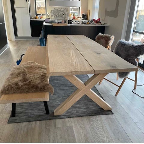 Spisebord, bænk samt sofabord egetræ fra Sitsleep.