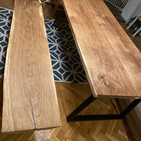 Plankebord spisebordsæt, bænk samt sofabord egetræ fra Sitsleep