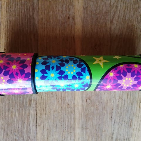 Man kan putte ting i plastiklåget, og så reflekteres de af spejlene indeni og skaber flotte effekter.