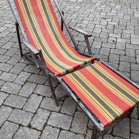Flotte retro liggestole i træ, kraftig kvalitet.
