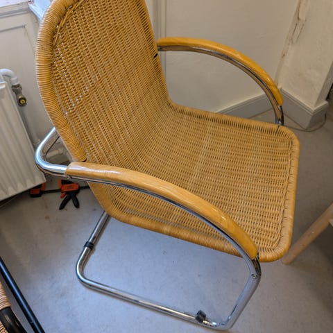Stol i flet på hjul med armlæn og tilhørende hynde