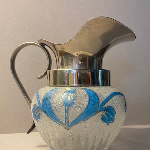 Nb flødekande og sukkerskål og kande med røde striber er solgt