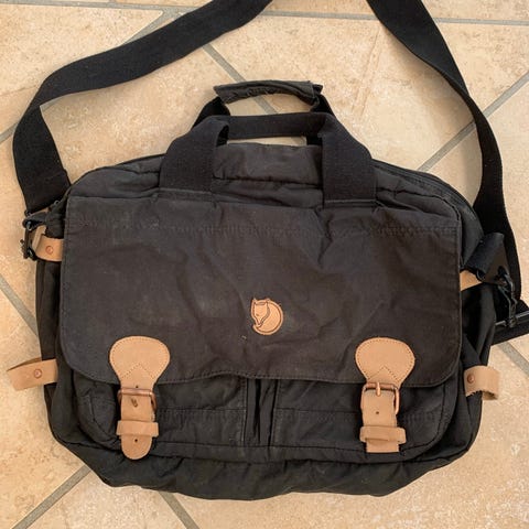 Computertaske, Fjallraven, b: 27 h: 35, Næsten som ny, top til den øverste trykknap er ikke originale ellers pænt og Næsten som ny, mål 35×27 cm. Stor taske, sender