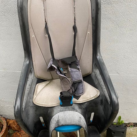 Thule RideAlong Lite stelmonteret cykelbarnestol som kun er brugt ganske få gange og har altid været opbevaret indenfor, når den ikke var i brug.