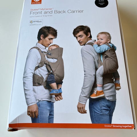 Stokke My Carrier Bæresele i sort farve. Denne bæresele fungerer op til 36 måneder. Kan bruges både med barnet foran eller på ryggen. Brugt et par gange. Og det bedste af det hele: instruktionsbogen er der endnu!