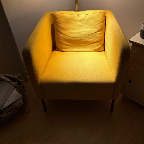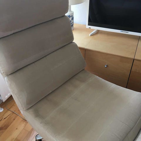 2 IKEA lænestole med aftageligt betræk. Pletter og slid på betrækket.