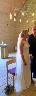 Brudekjole, Just for you, str. S, Hvid , —-, Næsten som ny, Fransk mærke “Just For You”. Fantastisk kjole med verdens smukkeste ryg!