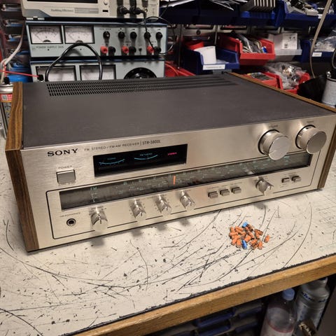 Sony STR-232L FM/AM Receiver i sølv. Denne model tilbyder både FM og AM modtagelse med frekvensområder fra 87,5 til 108 MHz for FM og 531 til 1605 kHz for AM. Enheden er designet til at levere klar lydkvalitet og er ideel til brug i hjemmet. Fremstillet i Japan, den har en robust konstruktion og klassisk design.