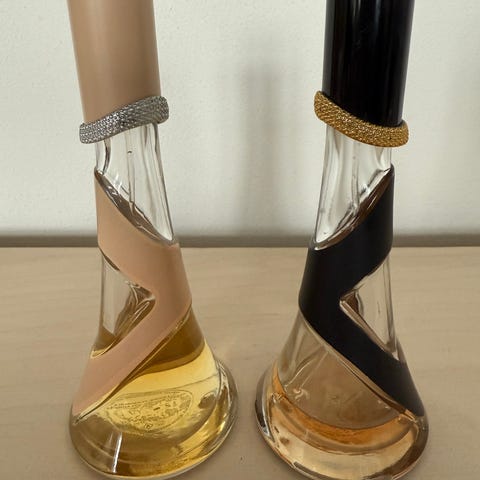 Det er en 50 ml parfume. Jeg vil tro at der er brugt lige under halvdelen af den.