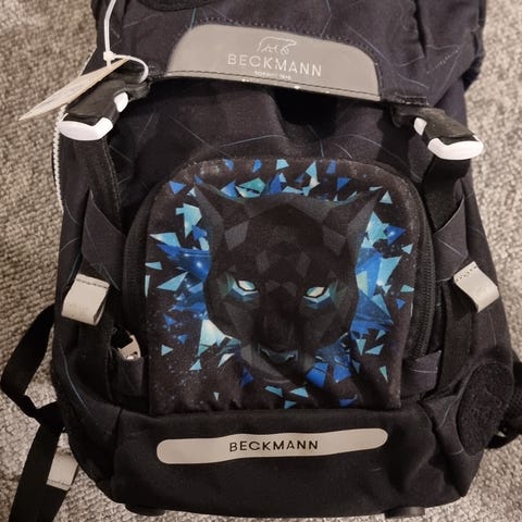 Flot skoletaske til de mindste. I rigtig fin stand. Indeholder 'mærkater' man kan skifte ud og regnslag som er gemt inde i tasken. Har brystrem og hoftebælte, reflekser på alle sider, og udvendig lomme til drikkeflaske.
