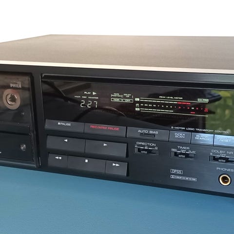Kenwood KX-W4070 kassettebåndoptager i sort farve. Denne model har dobbelt kassettefunktion og er designet til at levere klar lydgengivelse. Ideel til dem, der ønsker at lytte til og optage på kassettebånd. Enheden har en robust konstruktion, der sikrer langvarig brug.