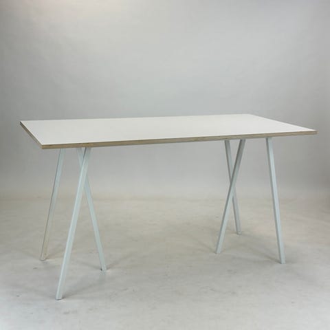 Dette Loop Table fra HAY er indbegrebet af moderne, skandinavisk design – en kombination af enkel æstetik og praktisk anvendelighed. Bordet har en slank rektangulær bordplade og karakteristiske, vinklede ben i pulverlakeret metal, som giver det både visuel lethed og stabilitet.