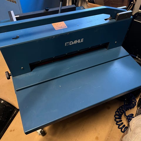Dahle 599 proff skæremaskine guillotine model op til A2 og kan tage 30 ark af gangen.