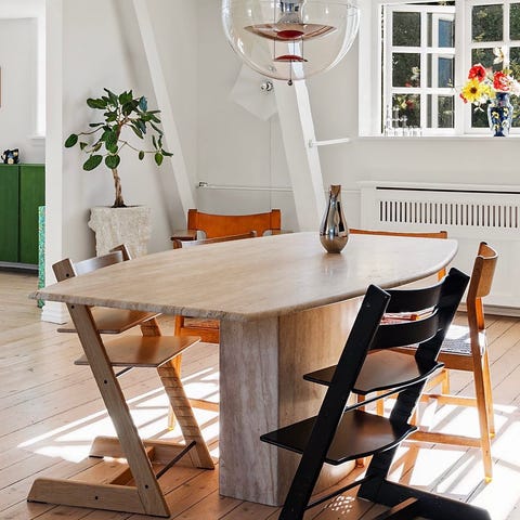Spisebord i travertin. Har et lille hak på hjørnet som man stort set ikke kan se - se billede.