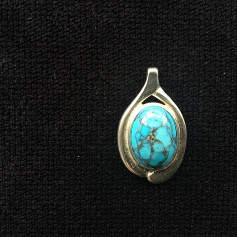 Flot vedhæng. Oval turkis og sterlingsølv. H: 15 mm.
