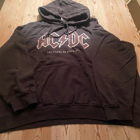 Pink hættetrøje med et stort "ROCK Live Music World Tour 76" tryk på forsiden. Trøjen har lange ærmer og en hætte. Den er lavet i Italien.