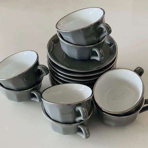 Koppen er ret stor og måler 7 cm i højden og 9,5 cm i diameter - kan fint bruges som krus uden underkop. Underkop måler 16 cm i diameter.